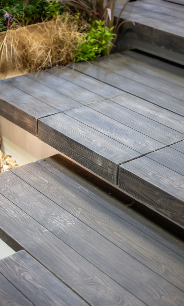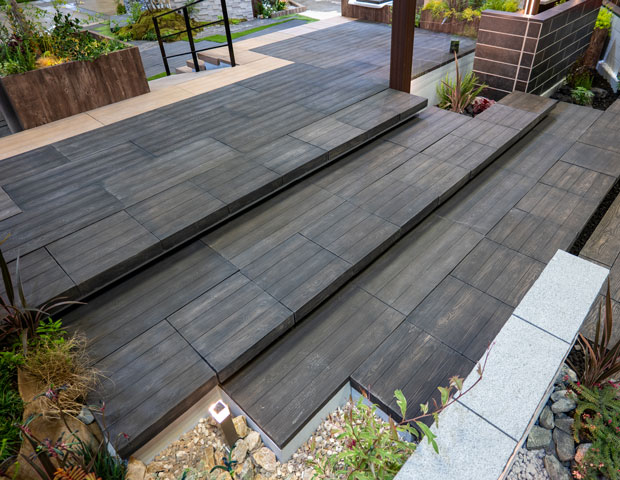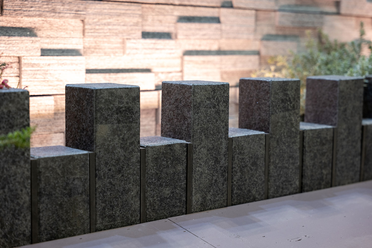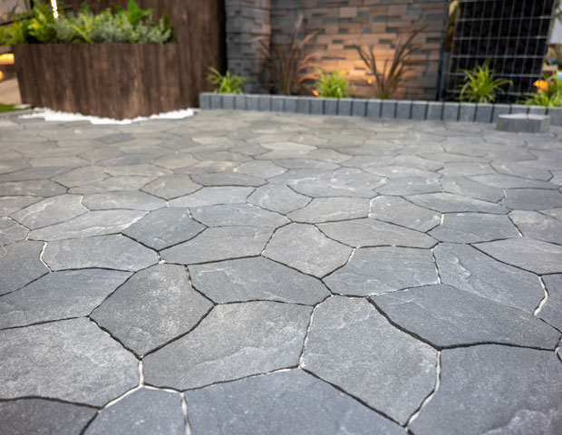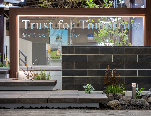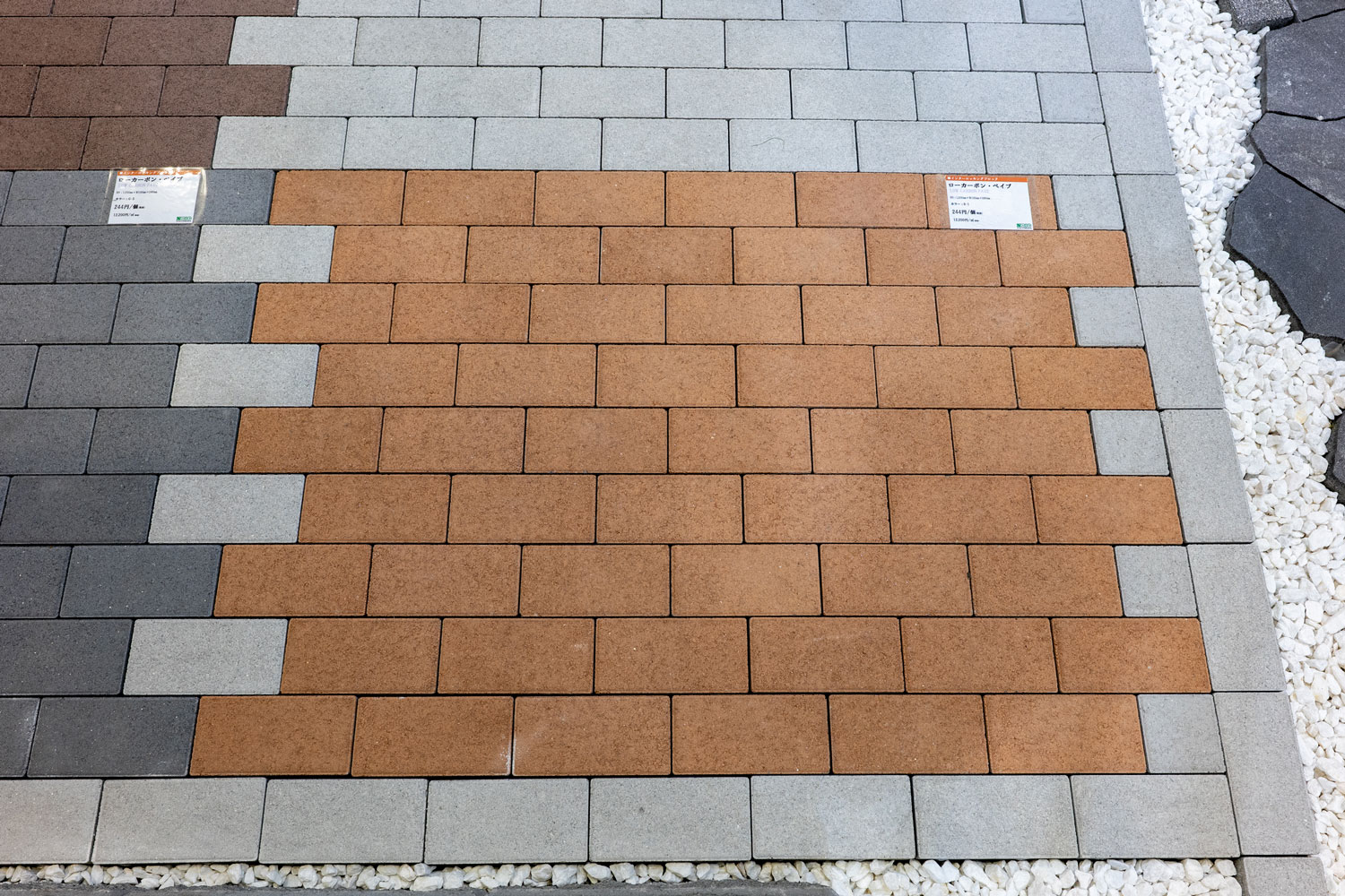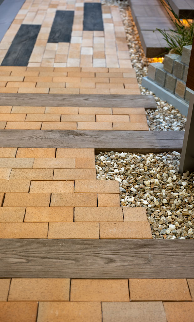 EXG2026に出展したエスビックブースのエリアマップです。 今年は、乱形インターロッキングをはじめ、木調製品や天然石の景石など、ナチュラルなデザインの外構アイテムを多数ご提案しています。 また、近年の労働力不足への対応として、施工の省力化と時短を実現する取り組みも紹介。インターロッキングブロックの機械施工や、新工法の嵌合コンクリートブロック「アイフィット」を展示しました。
